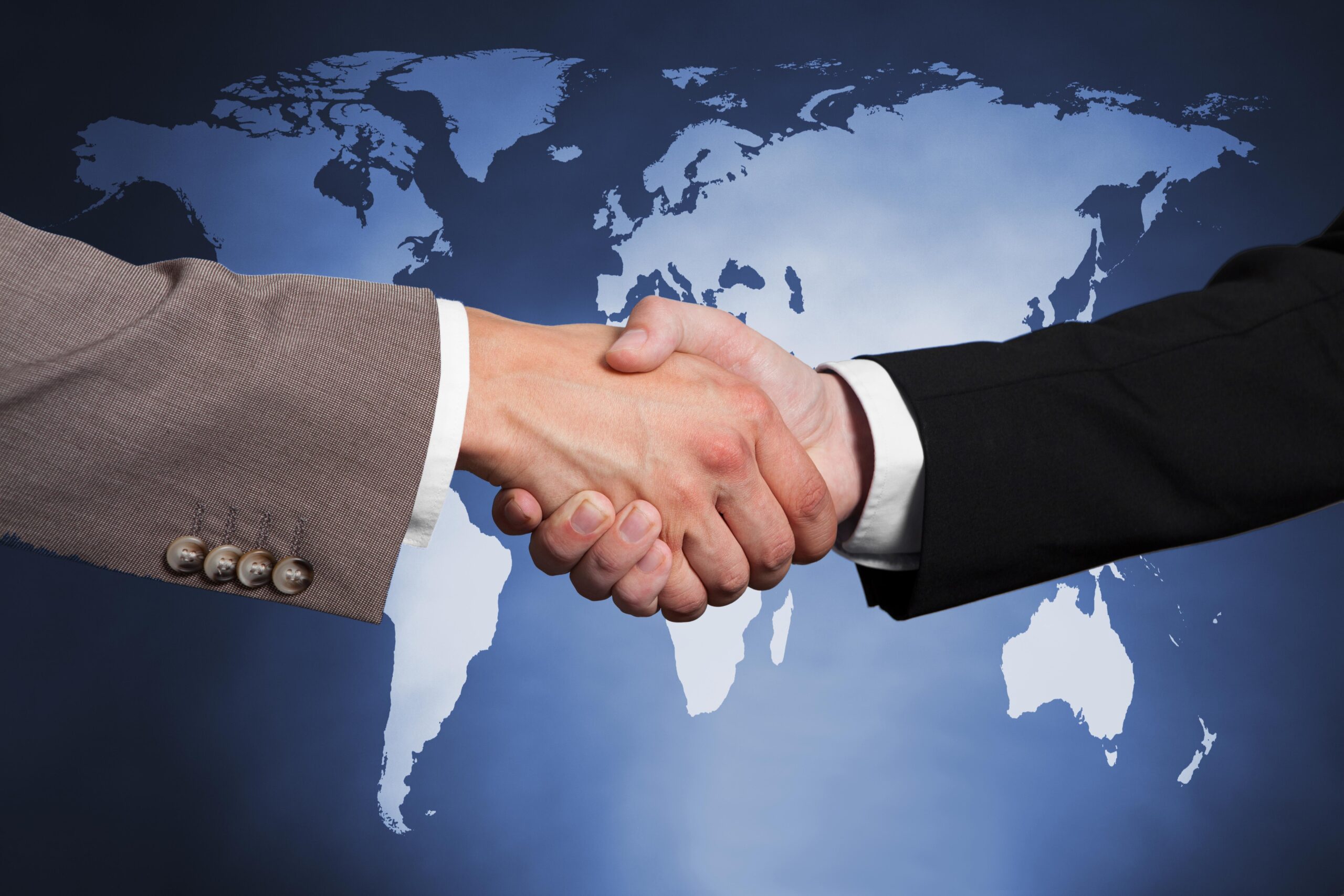 Businessmen Shaking Hands Against Worldmap